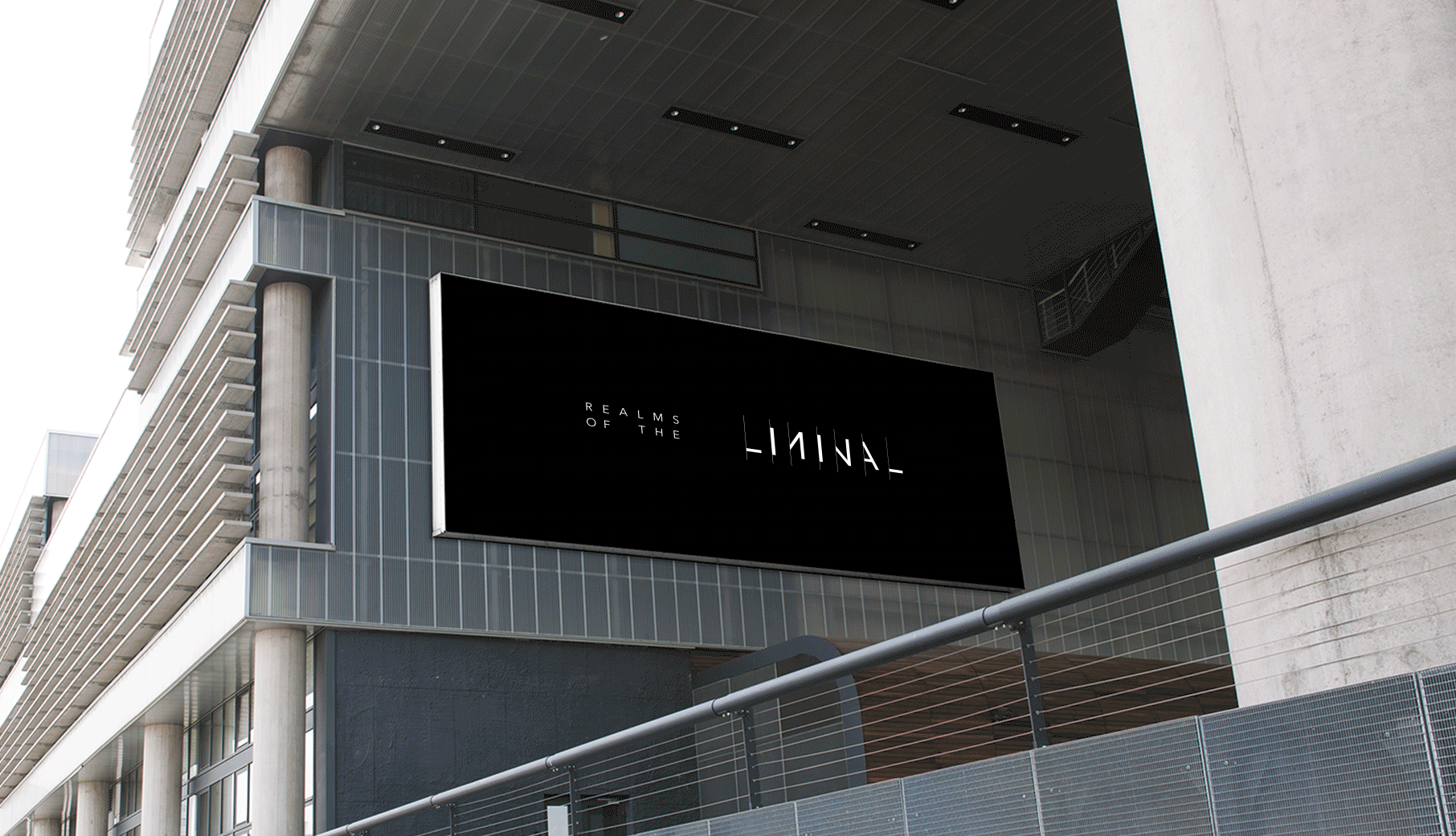 We use a vertical line to pierce through the core word “LIMINAL”, and hide one half of it, while the other half that is retained can still be recognized. This action is inspired by the term “Liminality”.
