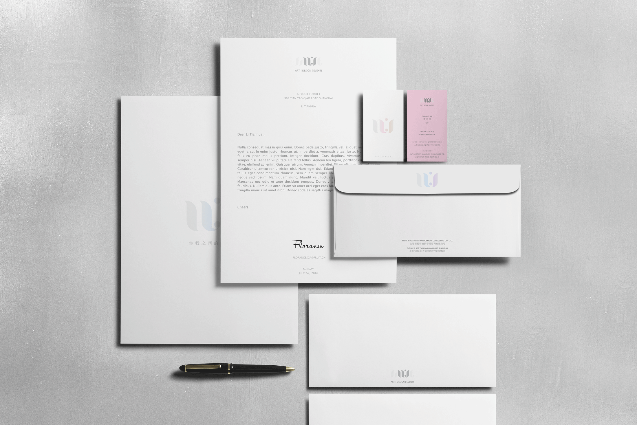 As a company grows, it needs to respond to market changes, even in the transitions in mindset of the founder. The branding of the company needs to adapt and visually reposition itself to both business partners and consumers. This Shanghai based company has pivoted to the art industry, doing art buying, curating, exhibitions, residency programs, artists related events and collaborations.