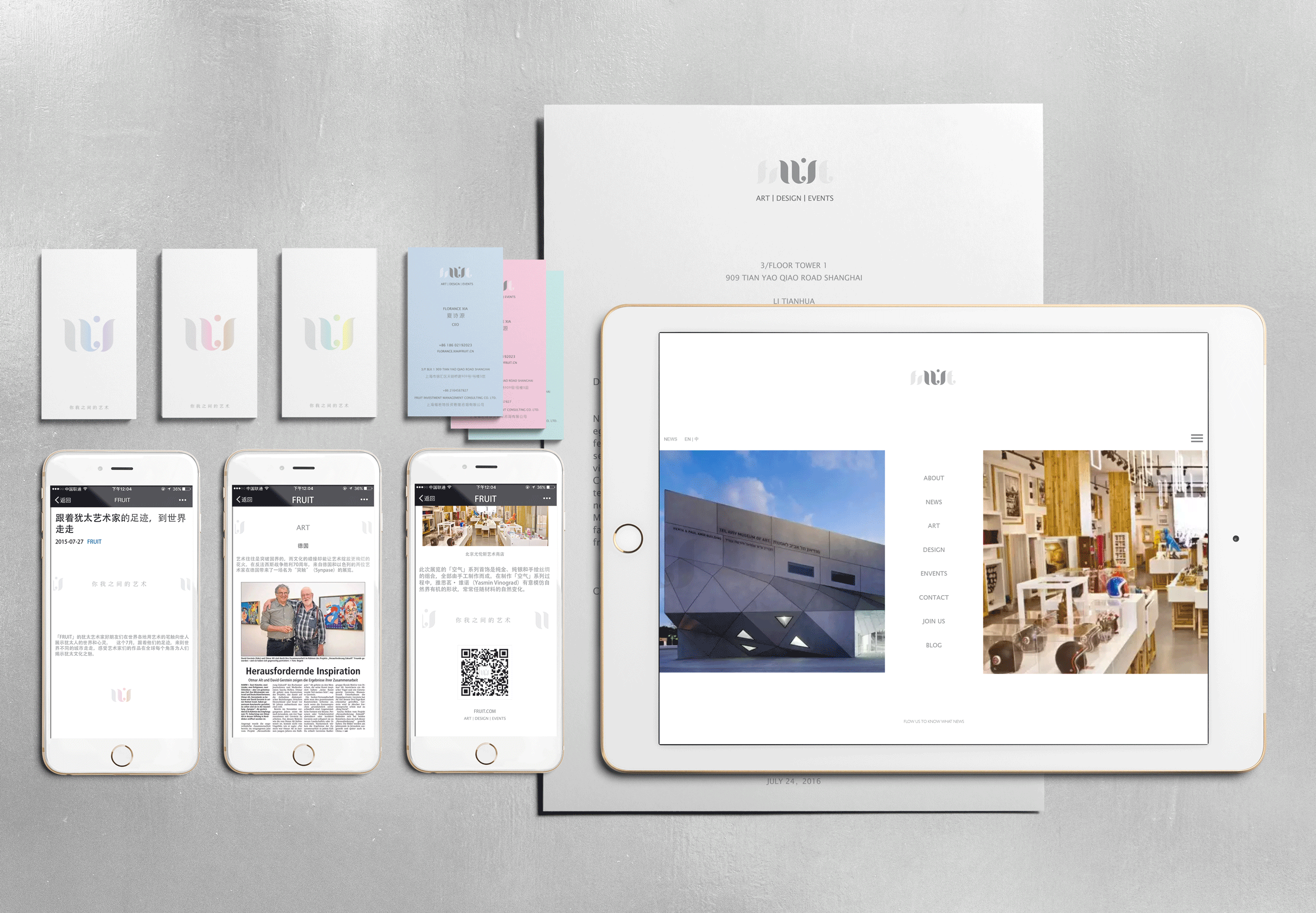 Interestingly, the client has a different take on what art means relative to prevailing perceptions in the China market. They believe art should be accessible to everyone, regardless of age, social status, and career background. Not only for the rich and social elites. Hence UI came into being. Part of the old entity FRUIT, and placing special emphasis on this relationship and interface between, you, I and Art.