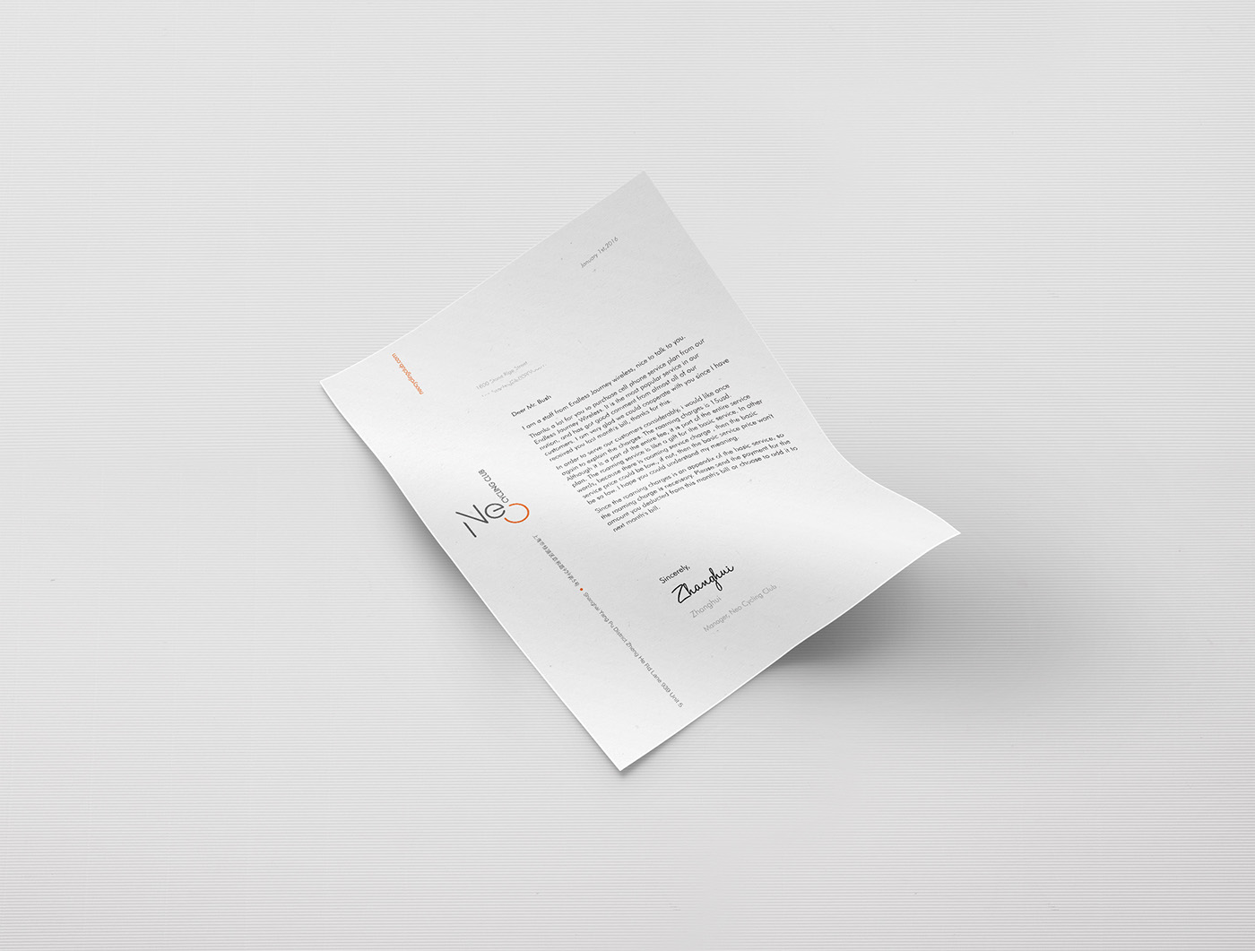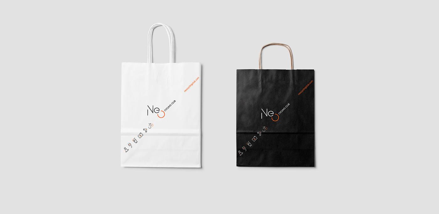 We used this unique opportunity to play with a logo that spins, much like a wheel. Typically logo are locked into a fixed orientation. We made the O in Neo into a hub, from which ‘cycling club’ spins into different 45 degree incremental postions. The difficulty with such a design is two-fold. 1) As a whole the logo is asymetrical, we had to balance it visually with line-weights, and spacing. 2) To bring this idea to life we had to make the different orientations work across different extensions.