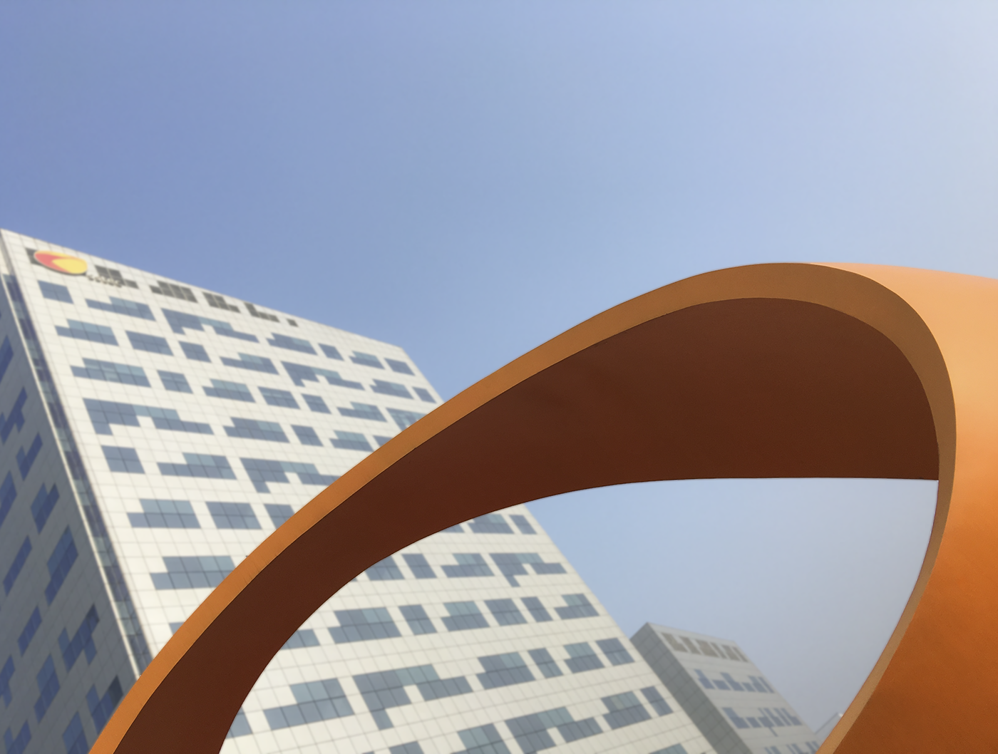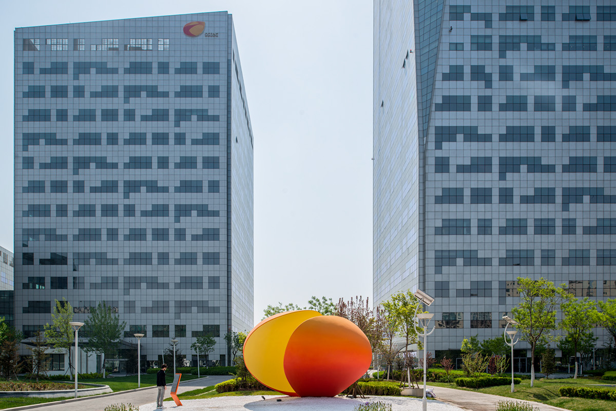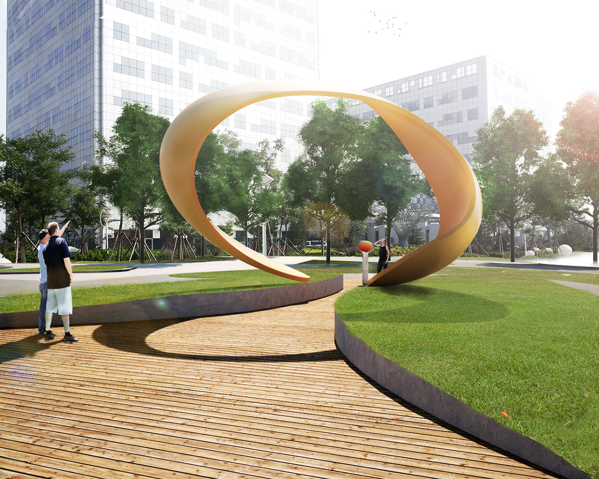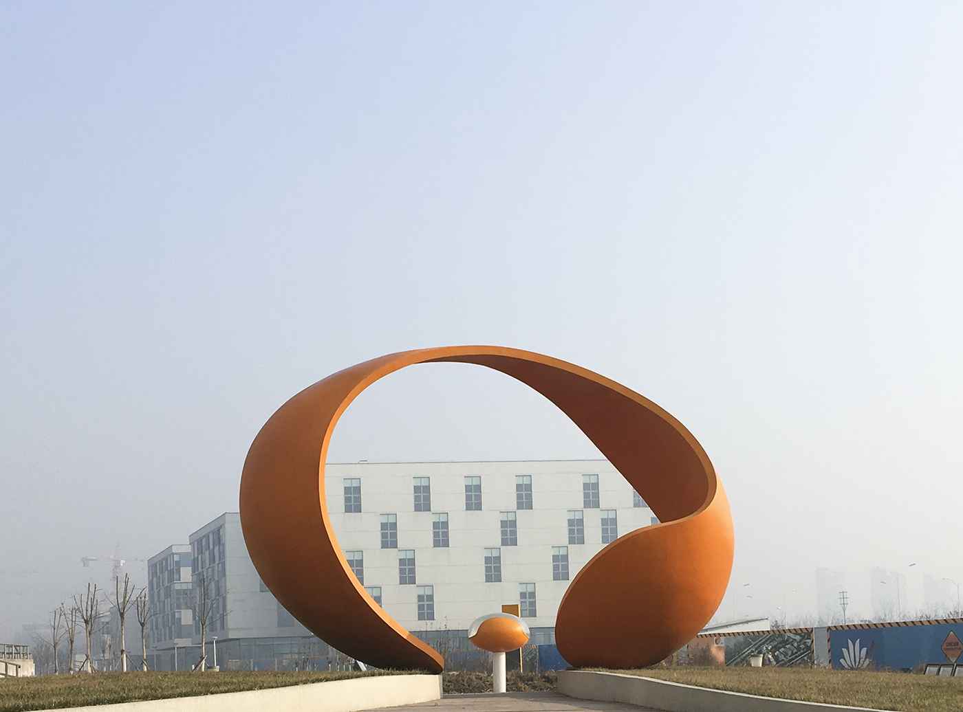 Connections is inspired by the logo of Sino-Singapore Tianjin Eco-City Investment and Development Co., Ltd (SSTEC), a seed bearing the promise of a new beginning. Firmly anchored in the ground, two pillars rise organically before meeting to form a single structure. This connection symbolises the close multi-level and multi-faceted collaboration and engagement between the governments, businesses and people of Singapore and China to forge a vibrant and sustainable city. A germinating “seed” feature is visible through the sculpture, exemplifying the growth of SSTEC and the Sino-Singapore Tianjin Eco-City. Together, Connections and New Beginning – the first sculpture in the Eco-Business Park – form a whole seed, the SSTEC logo.