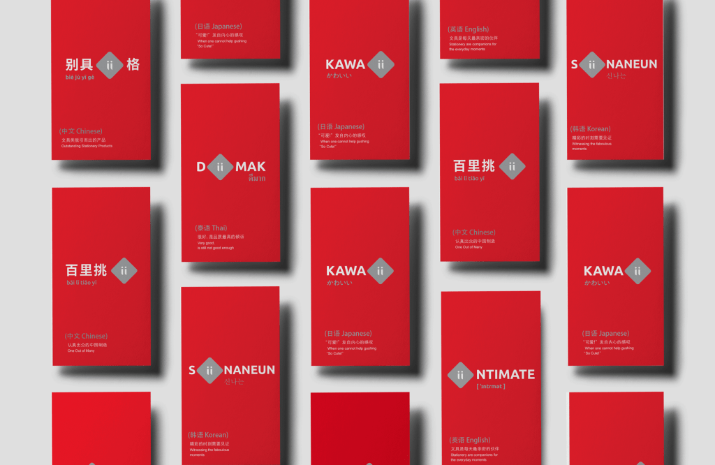 Hence the wordplay we created using ii as both symbol and alphabet in different languages, expressing different brand qualities in different languages. A brand with true global aspirations, demonstrating the will and sincerity to connect with diverse multi-national and multi-cultural markets.